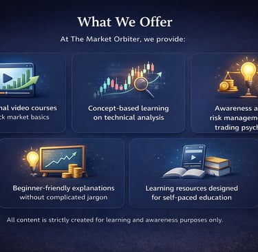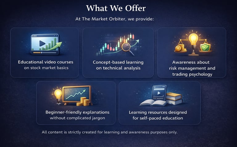 The Market Orbiter is an educational platform created with the aim of spreading stock market knowledge and financial awareness in a simple and structured way. Our focus is on helping beginners understand market concepts through easy-to-follow video lessons and educational content.